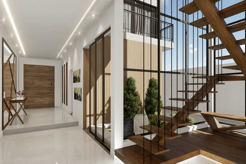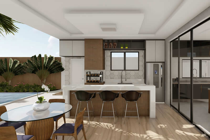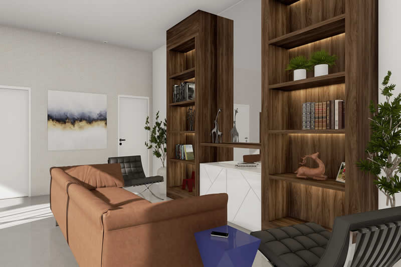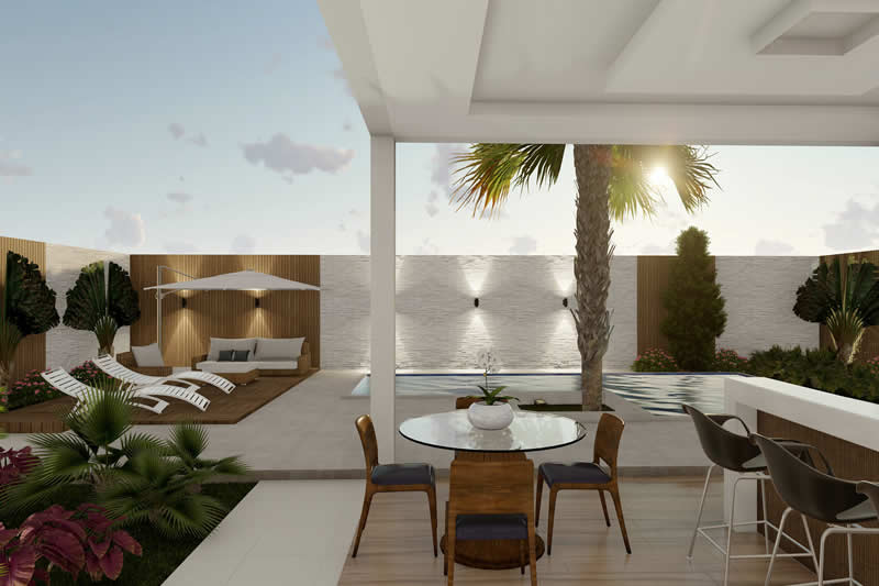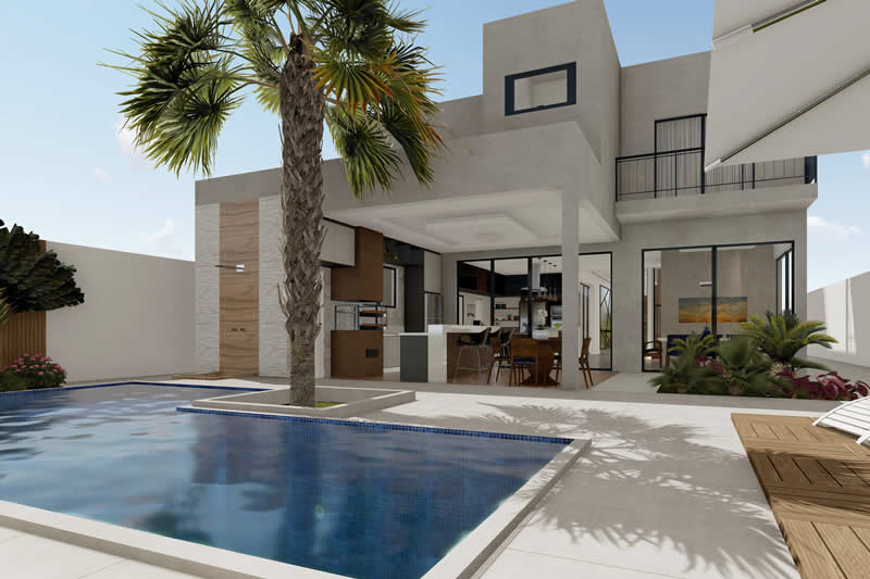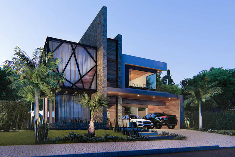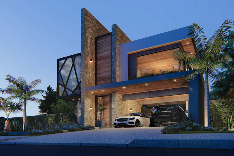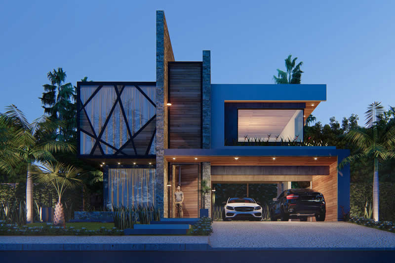 Esse item é essencial para a visualização mais realista de como ficará a fachada frontal. Renderizamos cenas noturnas e diurnas da fachada frontal.
