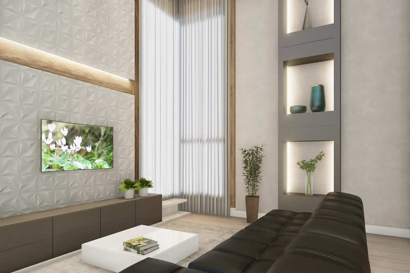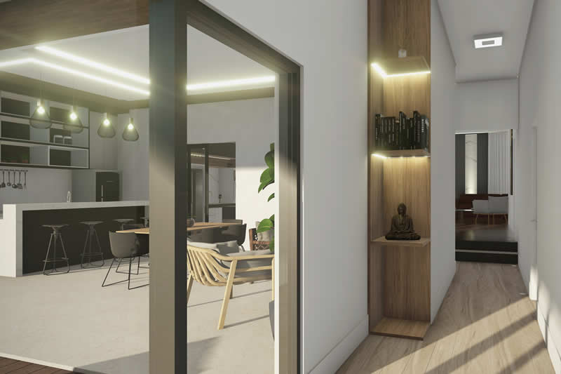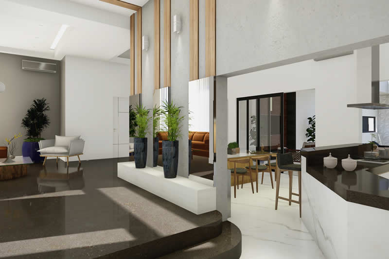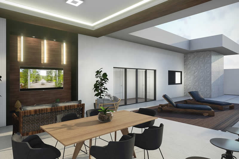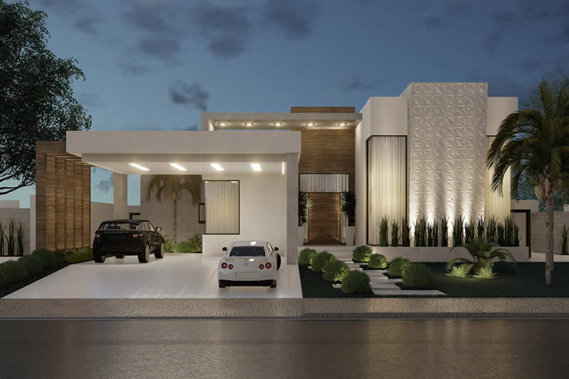 Esse item é essencial para a visualização mais realista de como ficará a fachada frontal. Renderizamos cenas noturnas e diurnas da fachada frontal.