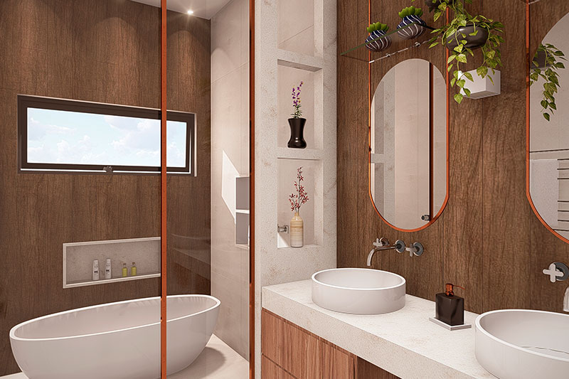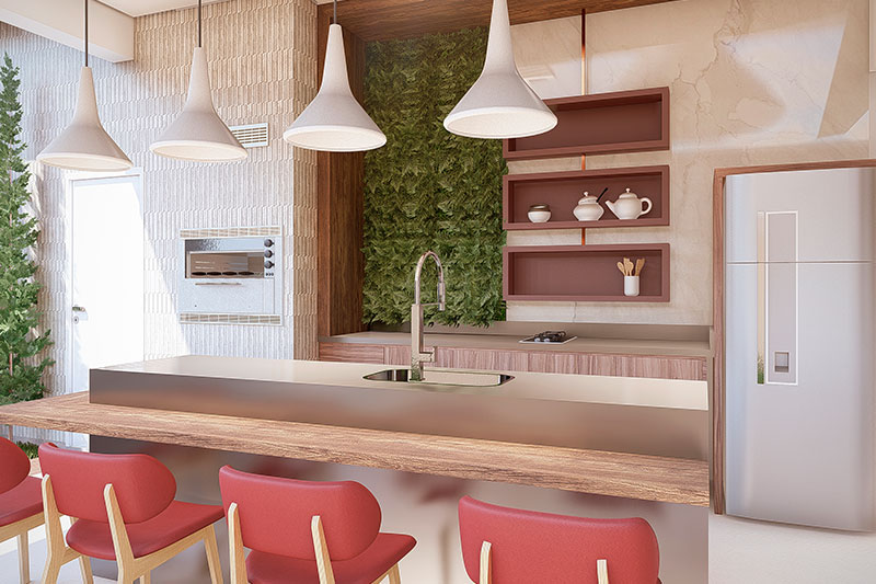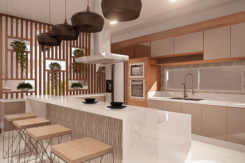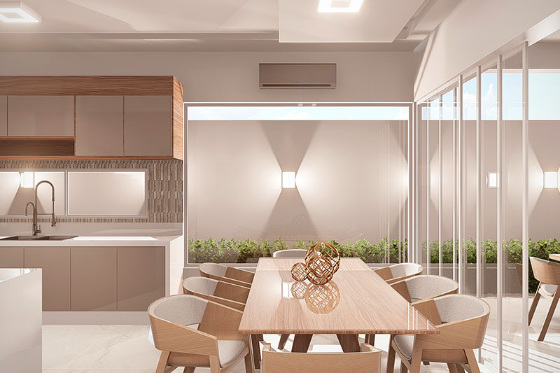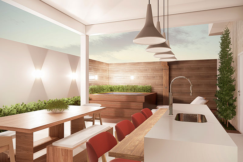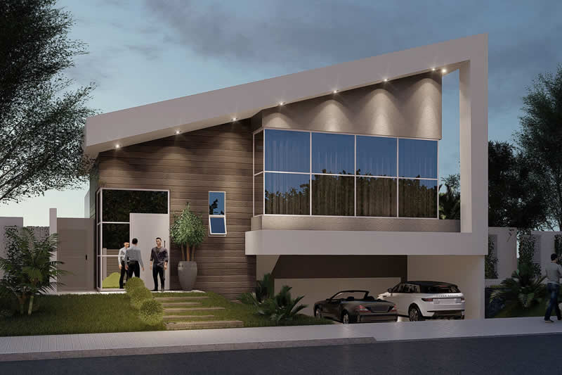 Esse item é essencial para a visualização mais realista de como ficará a fachada frontal. Renderizamos cenas noturnas e diurnas da fachada frontal.
