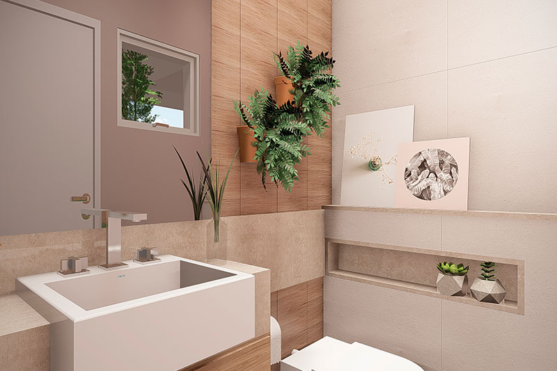 Esta planta apresenta a casa de forma artística, possibilitando a visualização dos móveis e vegetação.