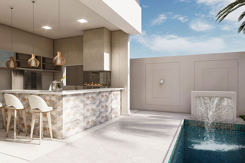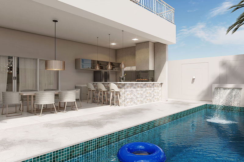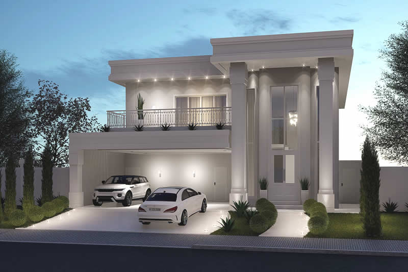 Esse item é essencial para a visualização mais realista de como ficará a fachada frontal. Renderizamos cenas noturnas e diurnas da fachada frontal.