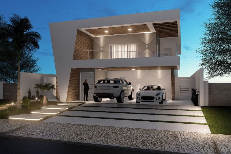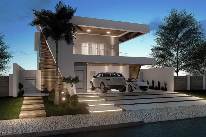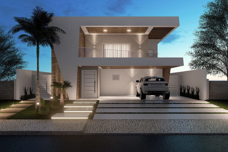 Esse item é essencial para a visualização mais realista de como ficará a fachada frontal. Renderizamos cenas noturnas e diurnas da fachada frontal.