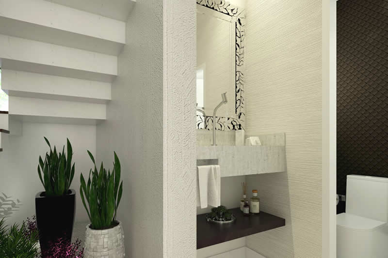 Esta planta apresenta a casa de forma artística, possibilitando a visualização dos móveis e vegetação.