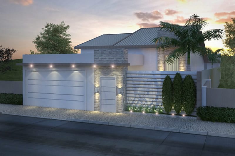 Esse item é essencial para a visualização mais realista de como ficará a fachada frontal. Renderizamos cenas noturnas e diurnas da fachada frontal.