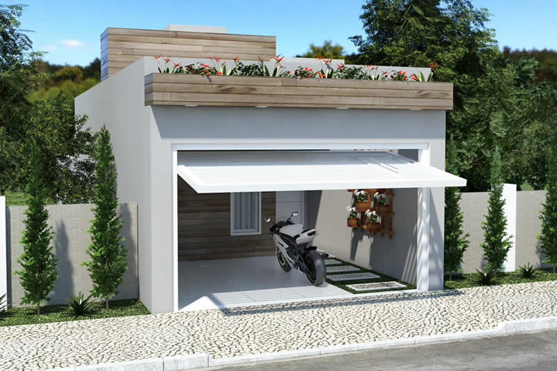 Essa é uma ótima opção de casa para investimento, podendo construir para alugar ou vender. Com uma fachada econômica, mas ao mesmo tempo moderna, essa casa se destaca pela facilitar em construir. A sala de TV, sala de jantar e cozinha são integradas, otimizando os espaços e minimizando os custos. Mais adiante temos o banheiro próximo a lavanderia, para diminuir a distância do encanamento. E no fundo ficam os dois quartos, sendo um de solteiro e o outro maior para uma cama de casal.