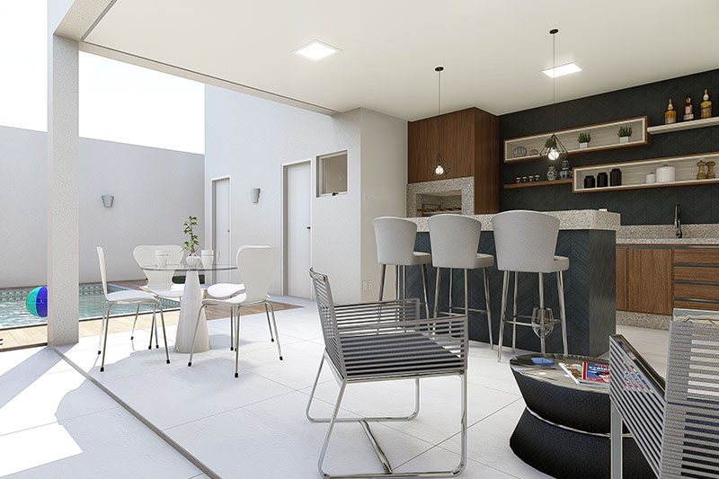 Esse item é essencial para a visualização mais realista de como ficará a fachada frontal. Renderizamos cenas noturnas e diurnas da fachada frontal.