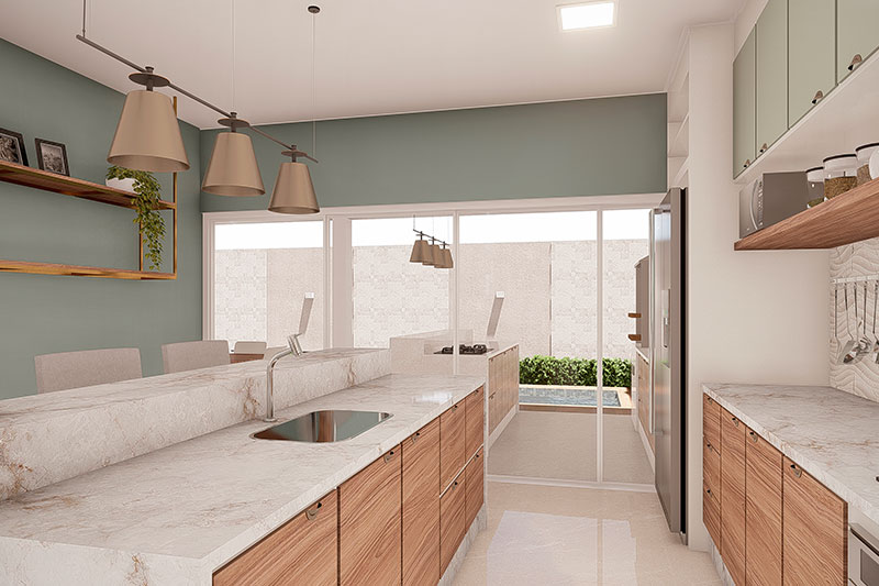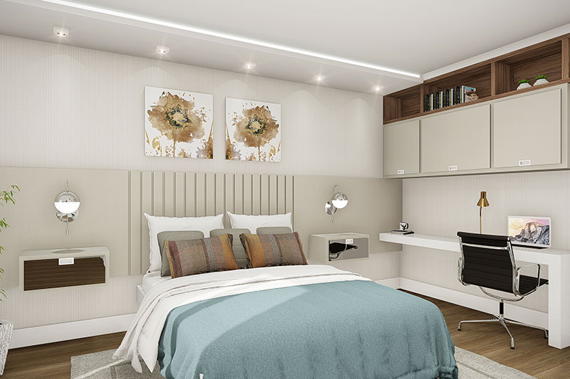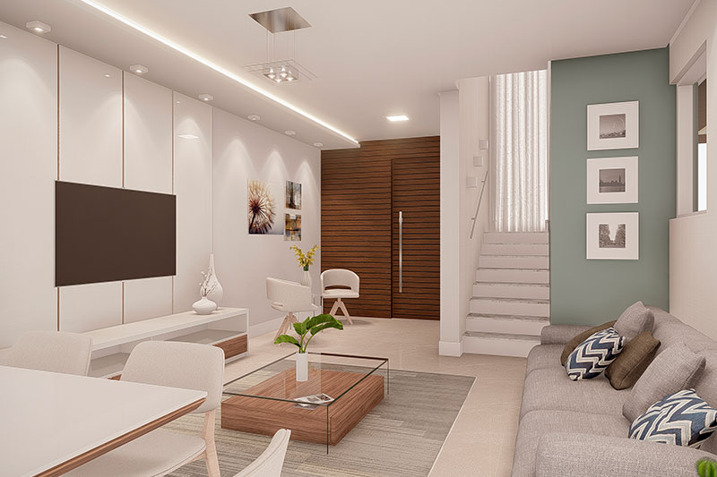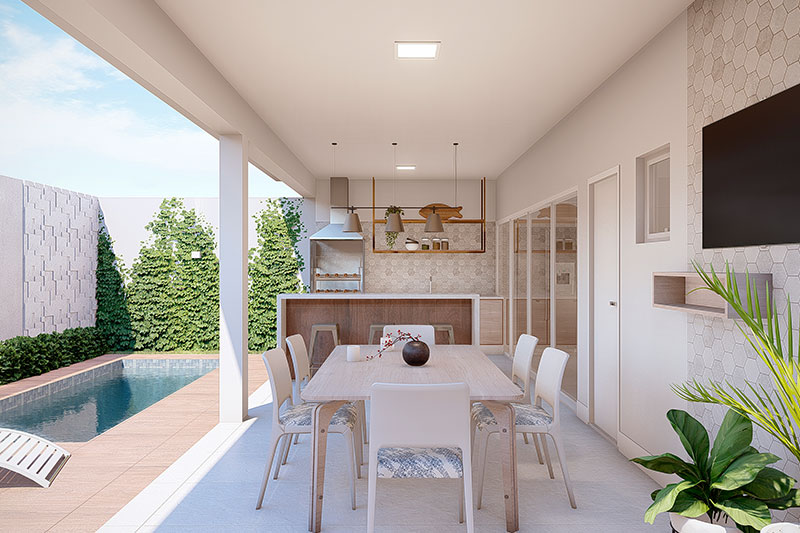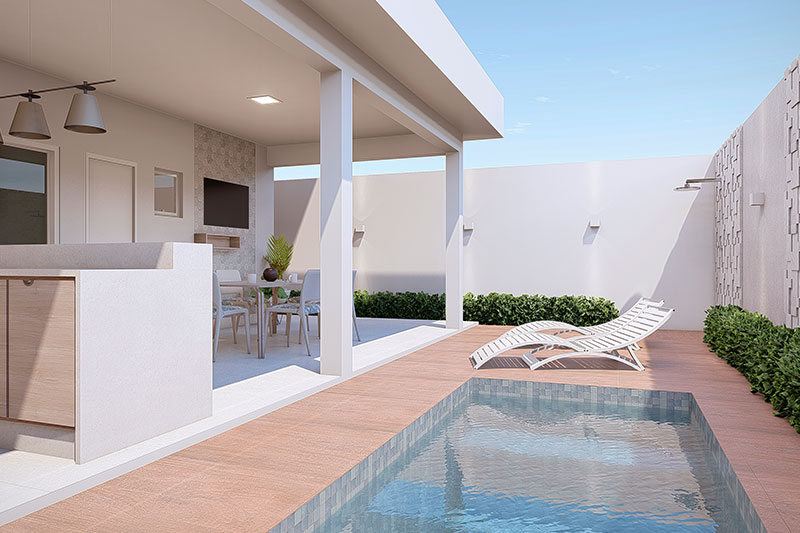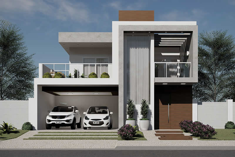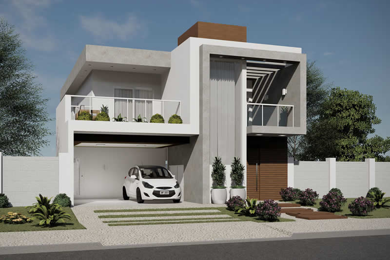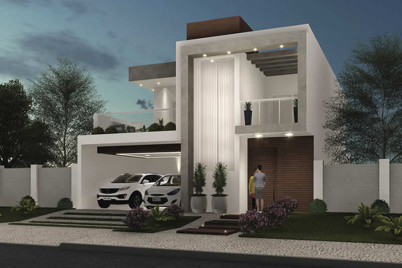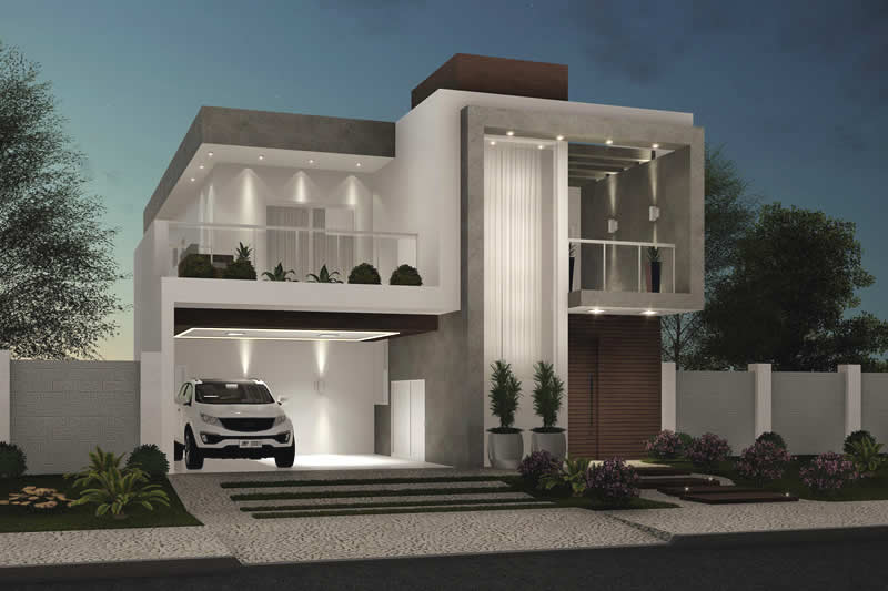 Esse item é essencial para a visualização mais realista de como ficará a fachada frontal. Renderizamos cenas noturnas e diurnas da fachada frontal.