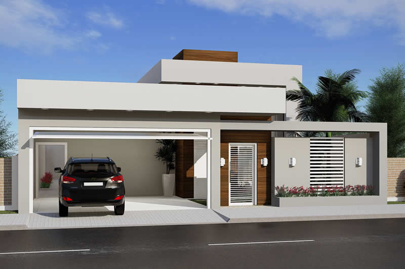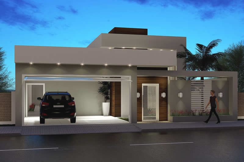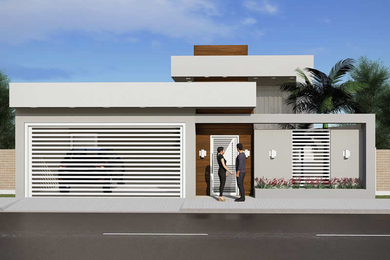 Essa é uma das melhores plantas que já fizemos para uma casa térrea para terreno de 12 metros de largura. Com garagem para dois veículos, essa casa possui sala de tv, jantar e cozinha integradas, aumentando a amplitude dos ambientes. No lado mais privativo são 3 quartos, sendo um deles uma suíte master com closet. Nós fundos ainda sobra espaço para uma área gourmet com piscina e deck de madeira.