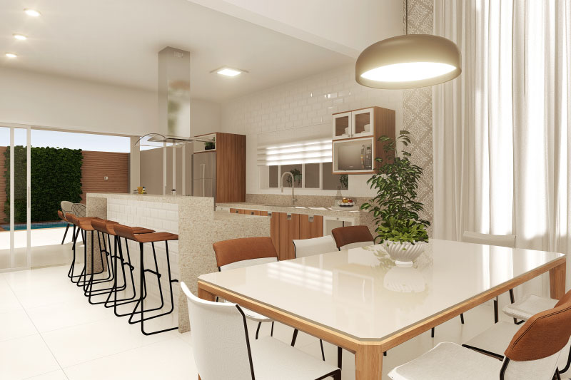 Esse item é essencial para a visualização mais realista de como ficará a fachada frontal. Renderizamos cenas noturnas e diurnas da fachada frontal.