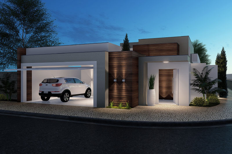 Esse item é essencial para a visualização mais realista de como ficará a fachada frontal. Renderizamos cenas noturnas e diurnas da fachada frontal.