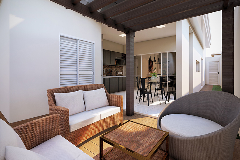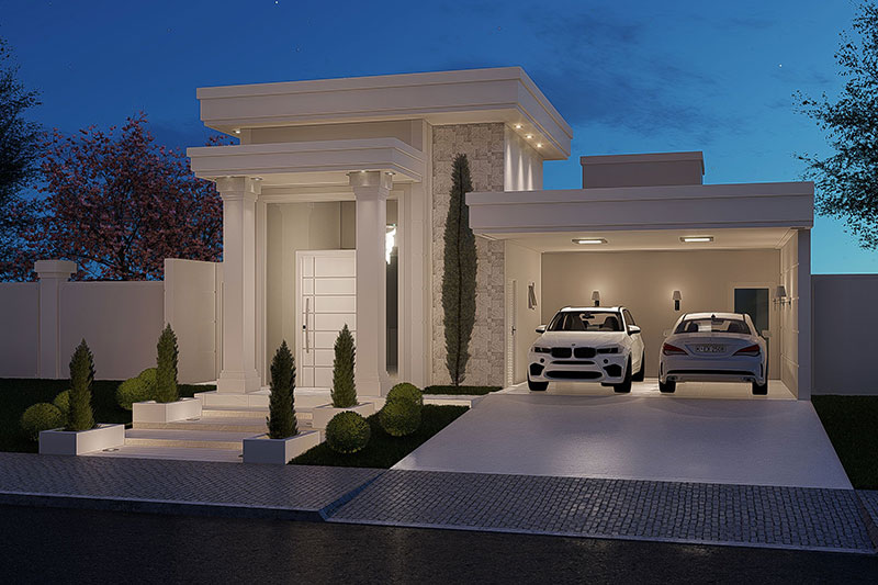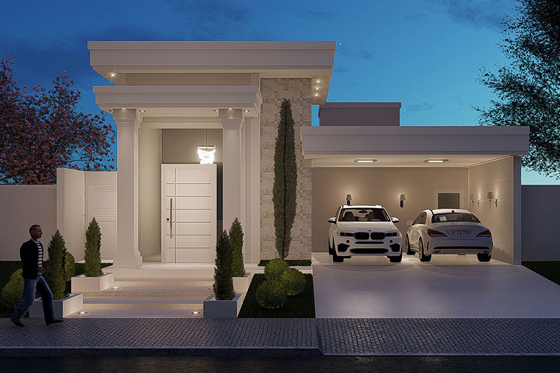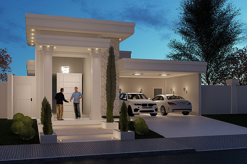 Esse item é essencial para a visualização mais realista de como ficará a fachada frontal. Renderizamos cenas noturnas e diurnas da fachada frontal.