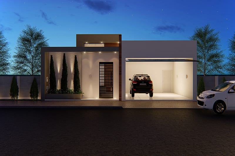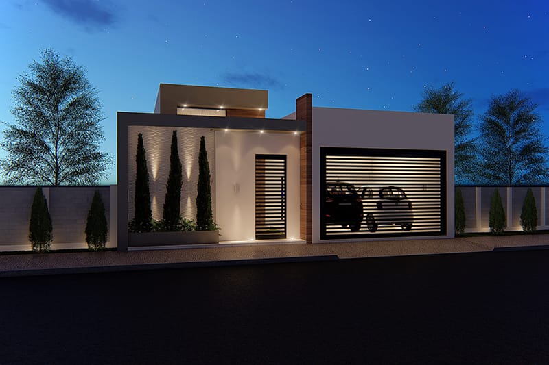Esse item é essencial para a visualização mais realista de como ficará a fachada frontal. Renderizamos cenas noturnas e diurnas da fachada frontal.