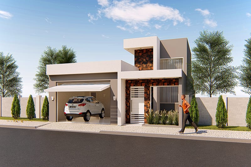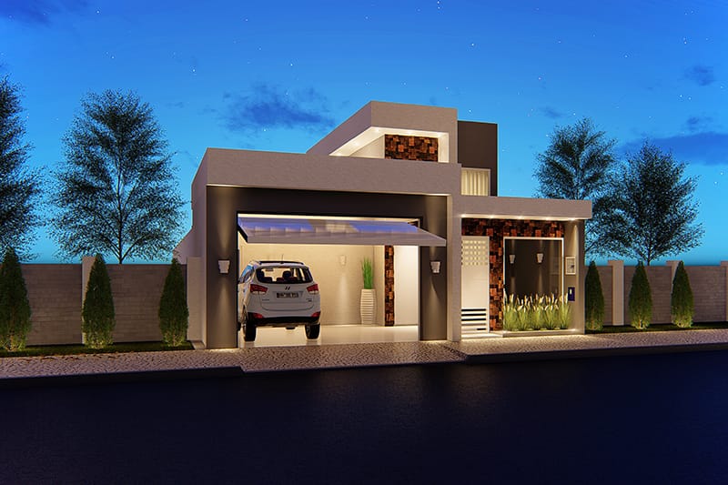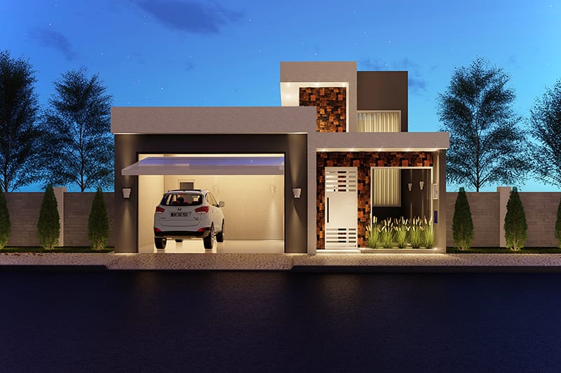 Esse item é essencial para a visualização mais realista de como ficará a fachada frontal. Renderizamos cenas noturnas e diurnas da fachada frontal.