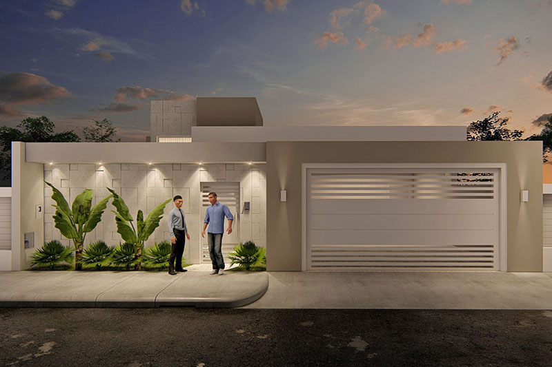 Esse item é essencial para a visualização mais realista de como ficará a fachada frontal. Renderizamos cenas noturnas e diurnas da fachada frontal.
